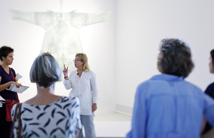 Eine audiovisuelle Station mit Musik-, Gesangs- und Bewegungseinspielungen ermöglicht eine Annäherung an die für westliche Augen und Ohren fremd anmutenden Klänge und Körpergesten. Spielerisch erschliessen sich nach und nach die geheimnisvollen Kodierungs- und Transformationsmedien.
