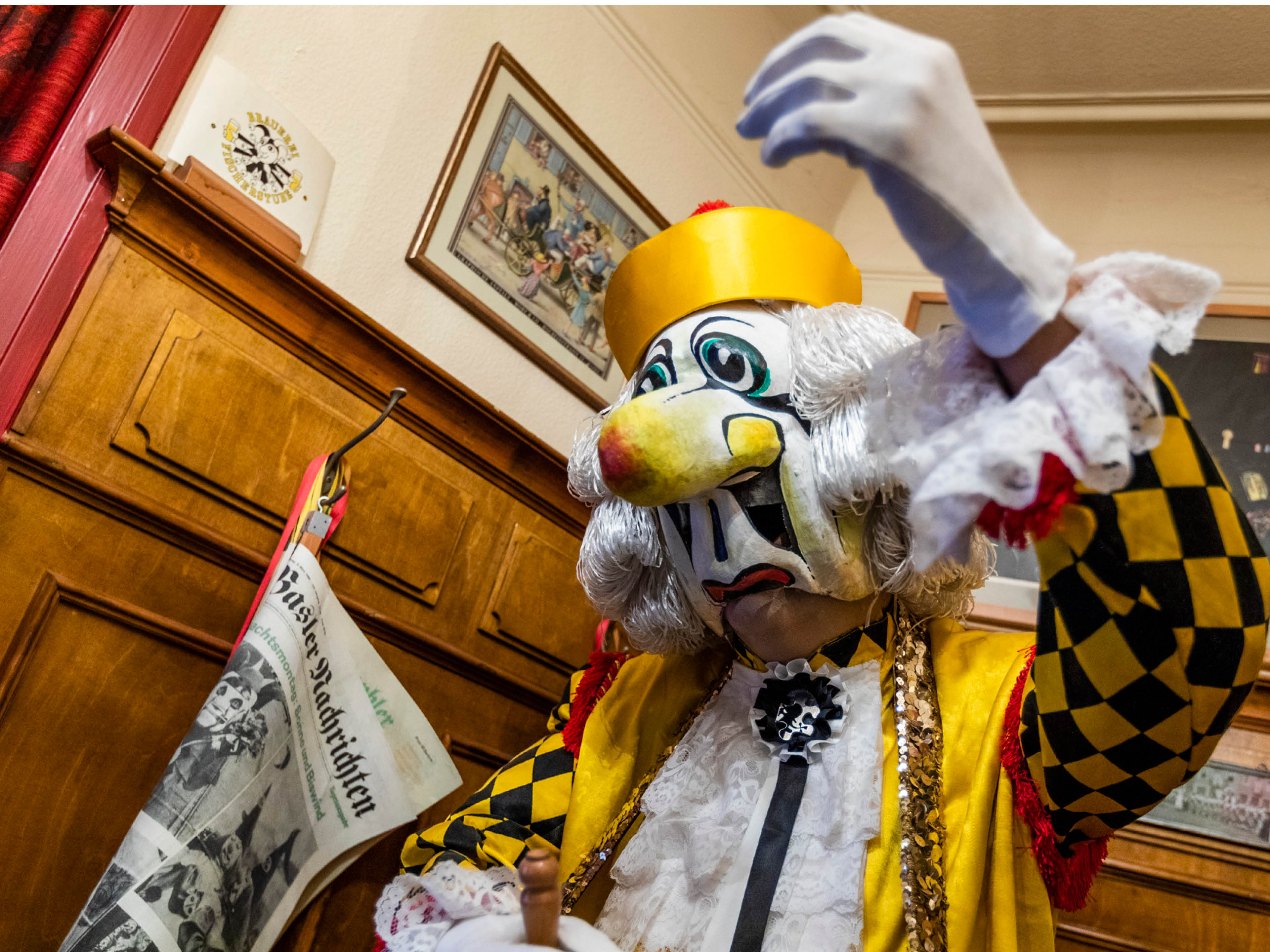 Wie es an der Basler Fasnacht noch heute zu und her geht, belegt die nachgebaute «Fasnachtsbeiz». Dort tritt auch ein sogenannter Schnitzelbank auf. Singend und in Versform macht er sich lustig über die Geschehnisse des vergangenen Jahres.