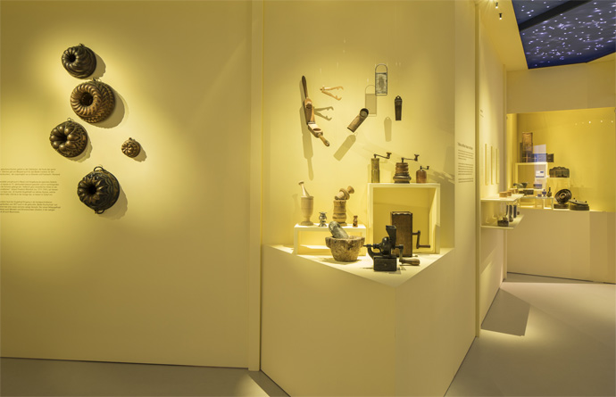Anis, Zimt, Vanille, Ingwer und Kardamom gehören ebenso in die Weihnachtsbäckerei wie Kakao und Orangeat. Sind wir uns aber bewusst, dass diese Gewürze und Ingredienzen nicht in unseren Gärten gewachsen sind? Die Ausstellung zeigt die Geschichte und Bedeutung dieser wohlriechenden Gewürze auf, zeigt alte Gewürzschachteln, Handmühlen und Mörser und wunderschöne, geschnitzte Model. Thematisiert werden auch regionaltypische Weihnachtsspezialitäten wie Dresdner Stollen, Panettone und das Basler Läggerli.
