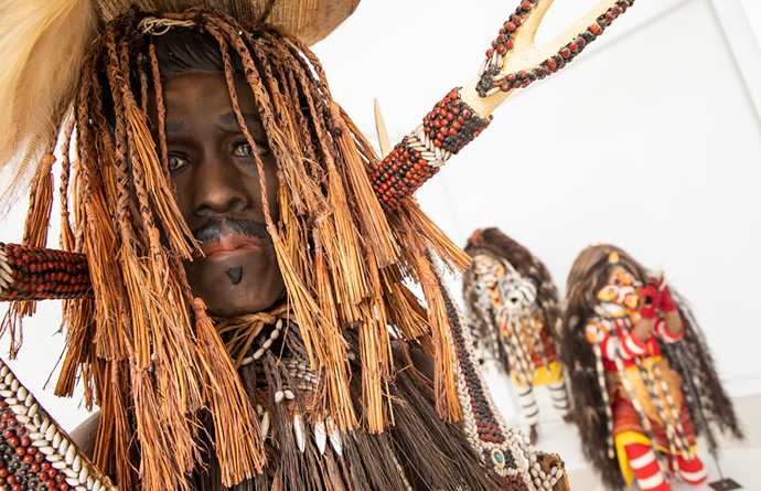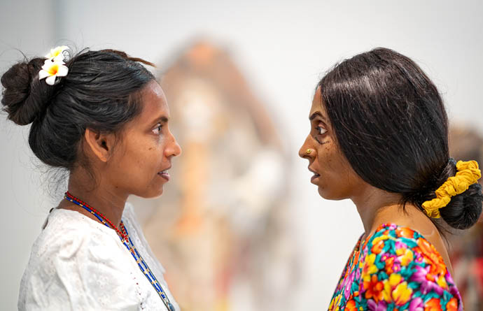 Ein Teil der Ausstellung «Stimmen aus einer archivierten Stille», die bis zum Lockdown am 13. März im Foyer des Theater Basel gezeigt wurde, ist neu in «Wissensdrang trifft Sammelwut» zu sehen. Darin stellt sich die Künstlerin Deneth Piumakshi Wedaarachchige provokativ als 3D Print den Zuschreibungen der Sarasins. Ryser + Schonfeldt thematisieren mit «Wir wünschten wir hätten euch sagen hören...» koloniale Verflechtungen von Sammlern und Sammlungen.