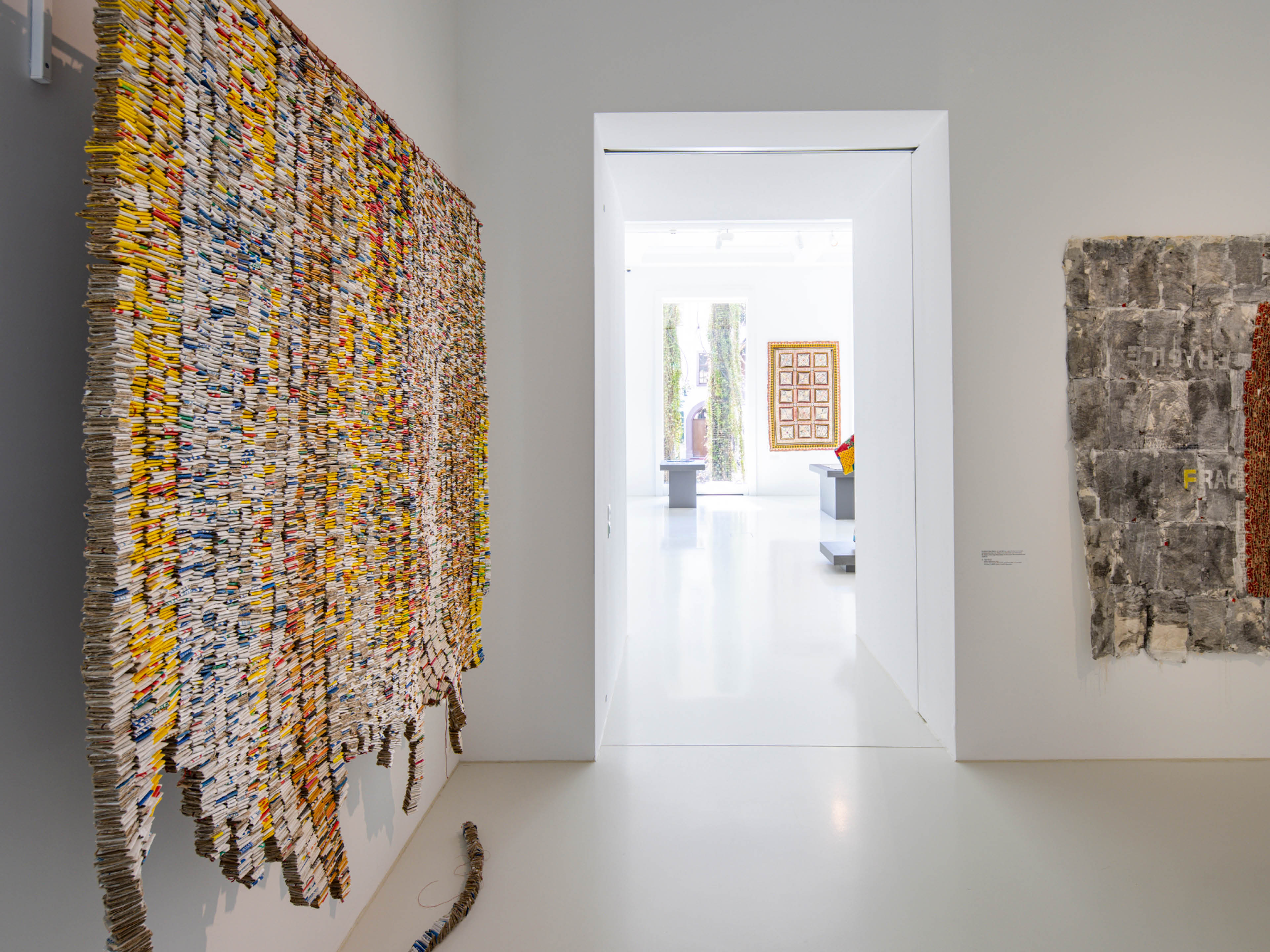 <p>«Im Eingangsbereich zeigen wir drei Dinge: Das sind einmal zwei Werke des Künstlers Wallen Mapondera. Er stammt aus Simbabwe und lebt und arbeitet in Südafrika. Er sucht Dinge, die nicht mehr in Gebrauch sind, um sie neu zusammenzusetzen. Und zum Zweiten dann ein Regencape aus Japan, was aus unterschiedlichen Materialien zusammengesetzt wurde. Und diese drei Teile sind in gewisser Weise eine Klammer von all dem, was wir hier zeigen.»</p>